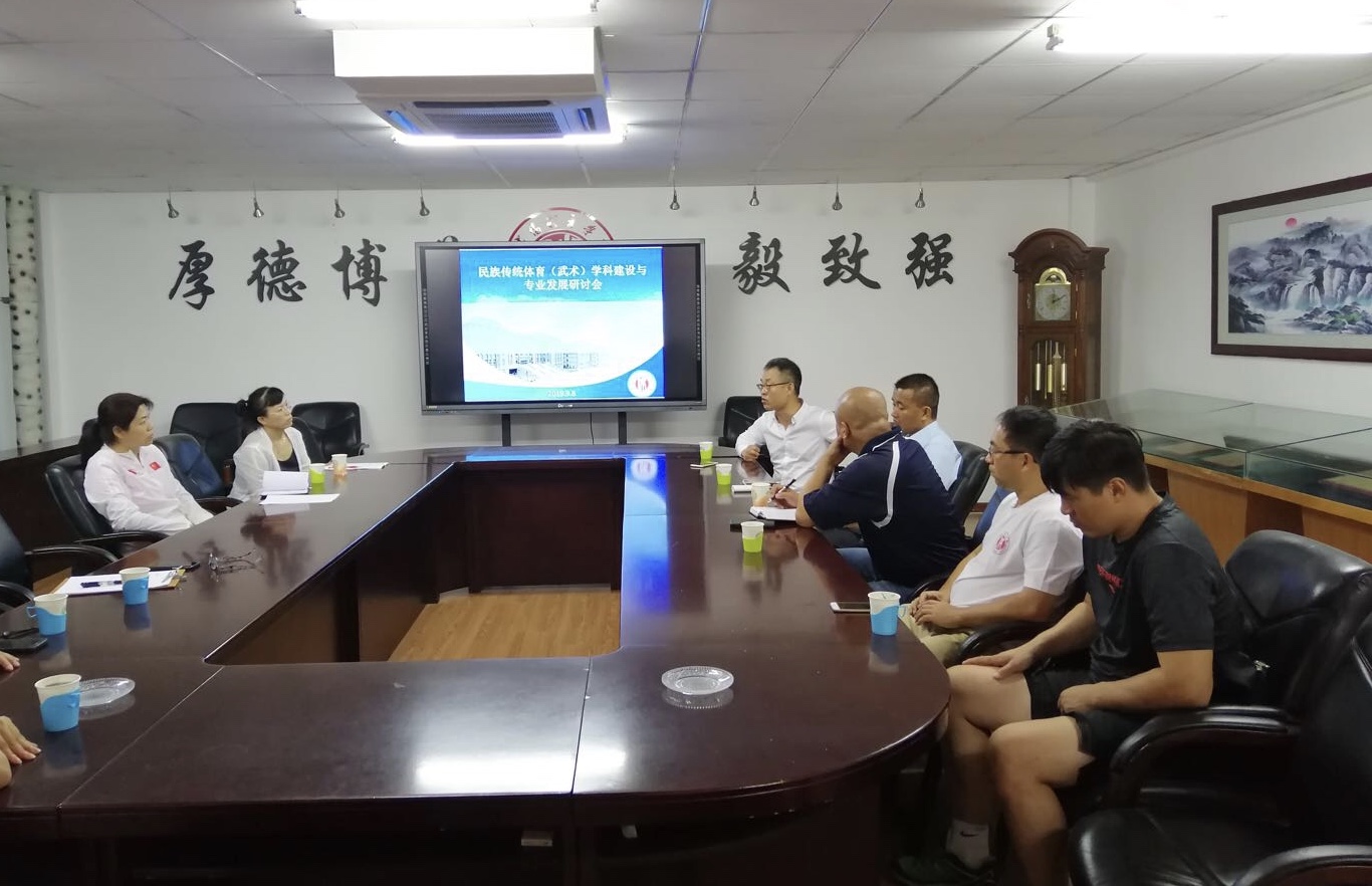 2019年9月8日下午3点,在武术与舞蹈学院会议室召开了“武术学科建设与专业发展”研讨会。武术与舞蹈学院副院长于海主持了会议,清华大学乔风杰教授、人民大学王智慧教授、武术专业教师及部分优秀毕业生参与了研讨会。