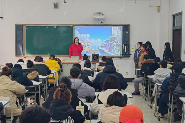 招聘会上,企业代表介绍安踏集团的发展历程,帮助毕业生对企业实力与行业前景有更加深入的了解,同时结合学院学生的专业背景与能力特点,详细介绍了本次招聘的重点岗位,具体说明了各岗位的职责内容、任职要求及职业发展路径,帮助同学们精准把握就业方向。毕业生们积极互动,气氛热烈。