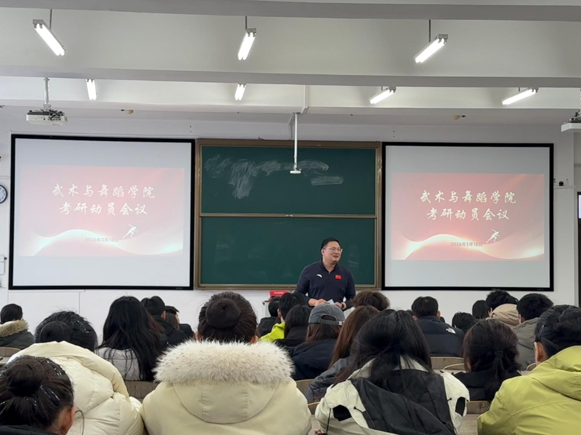 3月18日,武术与舞蹈学院召开考研动员会议,学院党总支书记孙海刚作动员讲话。全院有考研意向的150余名学生参加会议。