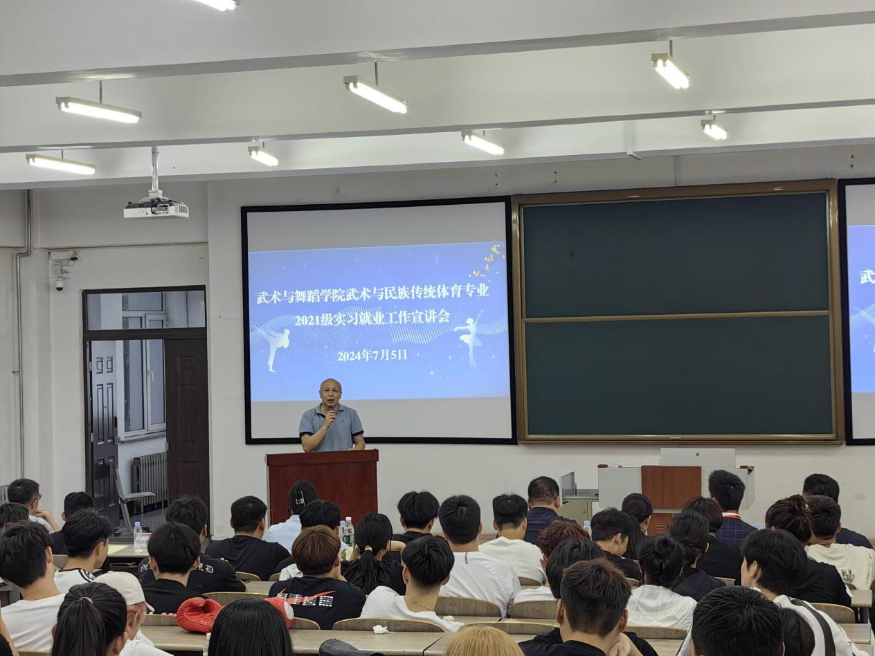 7月5日,武术与舞蹈学院武术与民族传统体育专业2021级实习就业工作宣讲会在教学楼211教室举行。沈阳星点武跃教育信息咨询有限公司、沈阳建筑大学附属中学等7家单位到校宣讲。