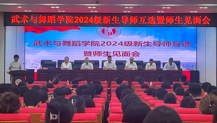 9月18日,武术与舞蹈学院在图书馆二楼报告厅召开2024级新生导师互选暨师生见面会。学院领导班子、全体教职工及2024级本科生、研究生参加此次会议。会议由办公室主任金洁主持。