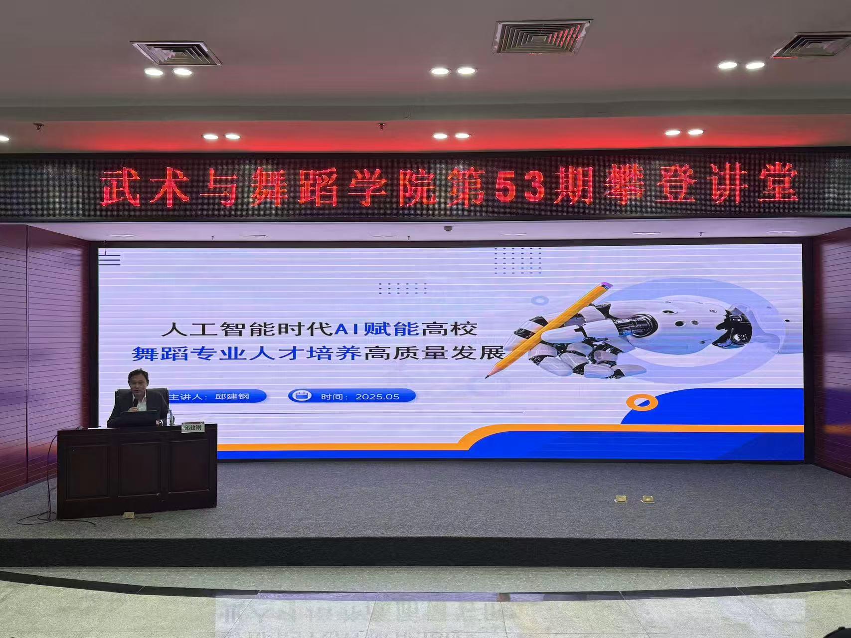 5月21日,学院邀请成都体育学院艺术学院院长邱建钢教授作题为《人工智能时代AI赋能高校舞蹈专业人才培养高质量发展》学术讲座。副院长王莉丽主持,舞蹈表演专业师生、基础教学部教师参加了本次讲座。
