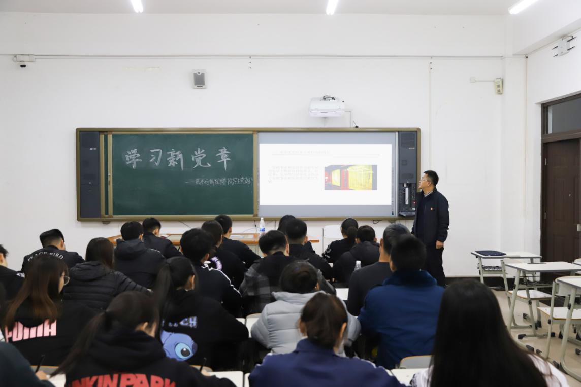 为深入开展“不忘初心、牢记使命”主题教育,不断拓展党建工作载体,创新党建工作内容,进一步增强学生党性观念发挥先锋模范作用,2019年10月14日,我院党总支书记刘振强老师带领业余党校成员们进行新媒体党课的学习——学习新党章。