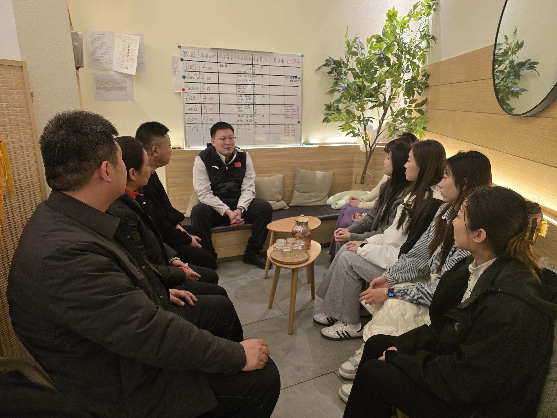 在两家企业负责人的陪同下,学院领导先后走访了515 Dance Studio舞蹈训练室及YOGAWAY瑜伽之路瑜伽教学区,观摩实习生参与的现代舞排练、瑜伽课程设计与教学实践,详细了解岗位技能需求。孙海刚对实习生在实习岗位上的专业表现给予肯定,指出“实践是职业素养的试金石,要扎根行业练就真本领”,通过实习锻炼强化就业工作准备。